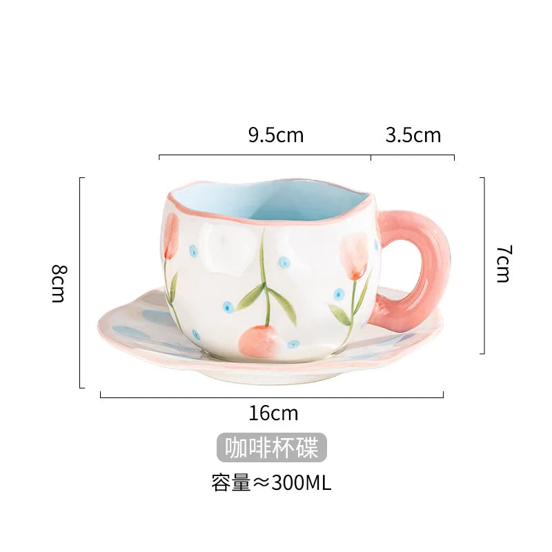 Indulge in the artistry of this 300ml handpainted ceramic coffee cup.