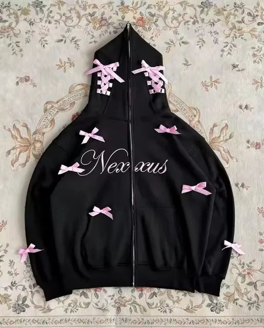 Women's Y2K Bow Strap Hooded Sweatshirt Jacket Harajuku Retro