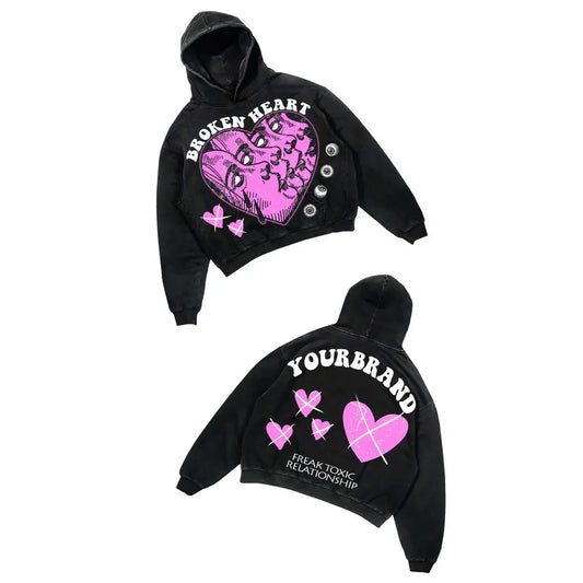 Women's Y2K Gothic Broken Heart Print Streetwear Hoodie