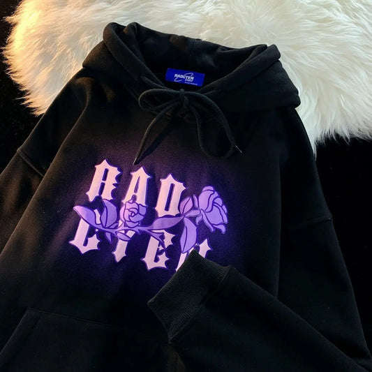 Women's Y2K Gothic Retro Print Hoodie Loose Streetwear K-Pop Style