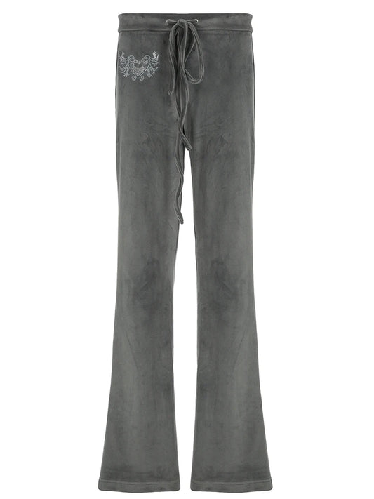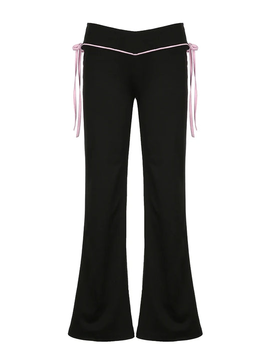 Women's Y2K Low Waist Lace-Up Flared Pants Black Casual Trousers