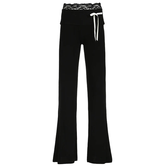 Women's Y2K High Waist Flared Pants with Lace Trim 2024 Fashion