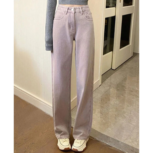 Women's Y2K Purple High-Waist Straight Jeans Vintage Korean Style