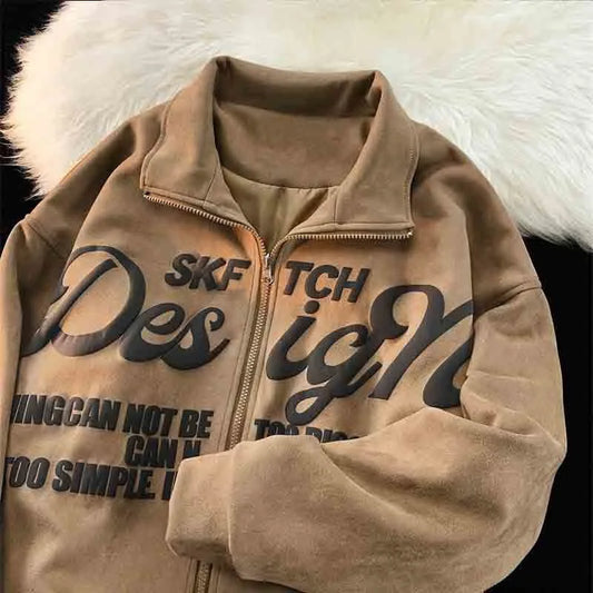 Women's Y2K Hooded Zipper Jacket Casual Loose Korean Coat with Fleece Lining