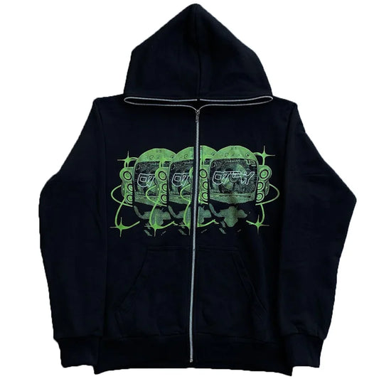Women Hoodies Printed Pattern Streetwear Oversized Punk Vintage Loose Casual