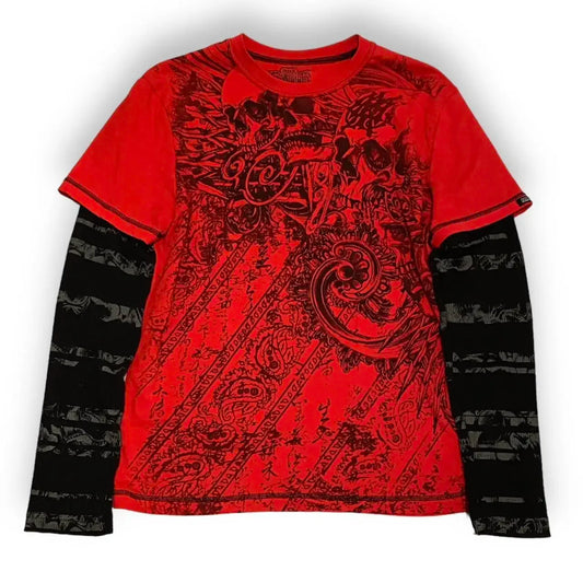 Women’s Grunge Abstract Print Fake Two-Piece Loose Long Sleeve Top