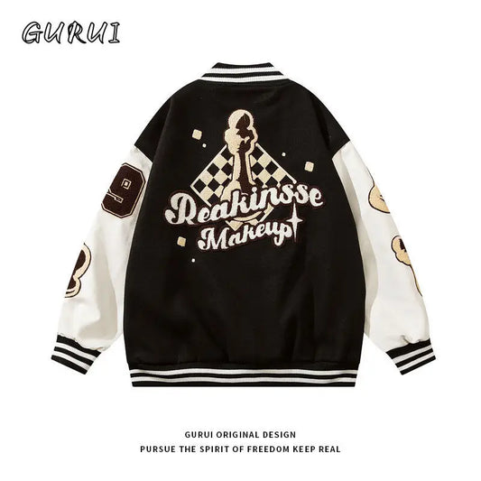 Y2K American Hip-Hop Embroidered Baseball Coat Men Autumn Winter