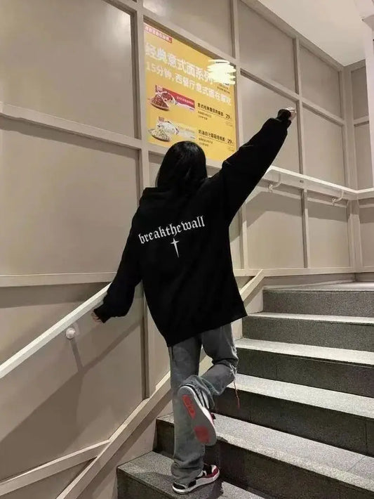 Y2K Cartoon Print Loose Hoodie Men Harajuku Fashion
