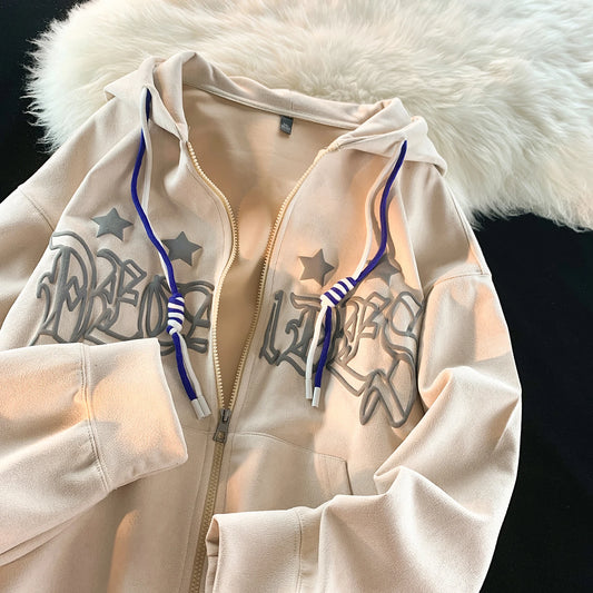 Y2K Faux Suede Gothic Zip-up Hoodie Drawstring for Men
