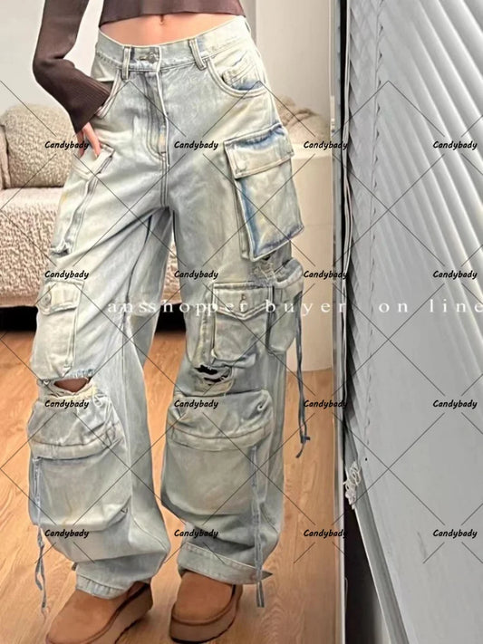 Y2K Jeans American Trend Multi-Pocket Straight and Loose Fit