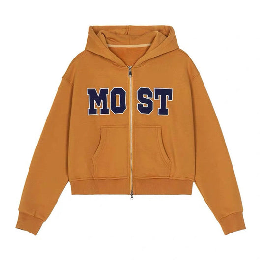 Y2k Hoodies Women Vintage Aesthetic Hip Hop Letter Embroidery Double Zipper