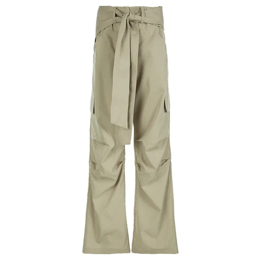 Y2K Khaki Pleated Loose Cargo Sweatpants Women