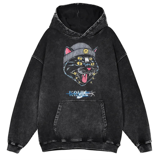 Y2K Krull Pattern Washed Denim Men Hoodie