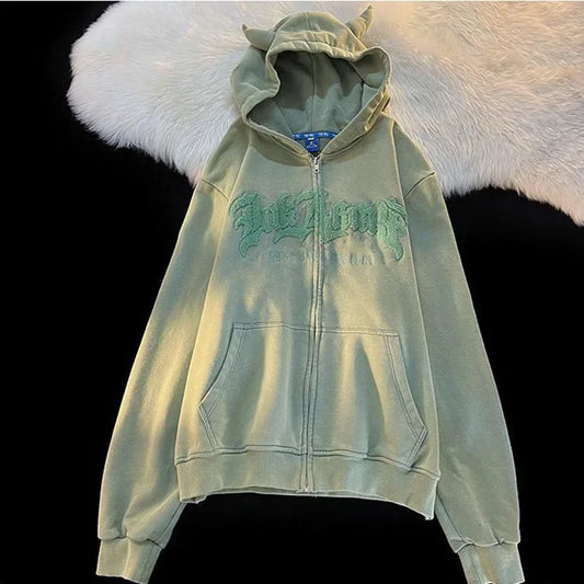 Y2K Letter Embroidery Zipper Hoodie