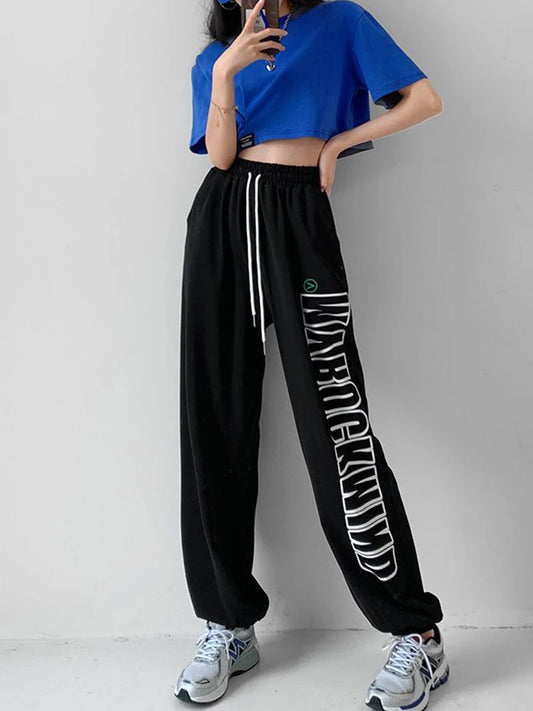 Y2K Vintage Black Sweatpants Women Streetwear Patchwork