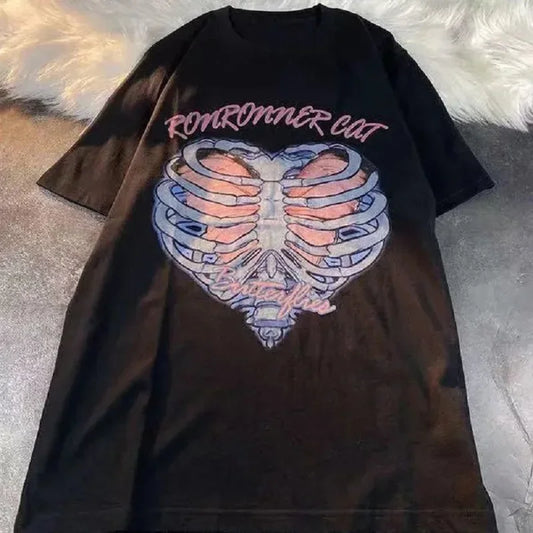 Y2K Vintage Funny Print Oversized T-Shirt Women Streetwear