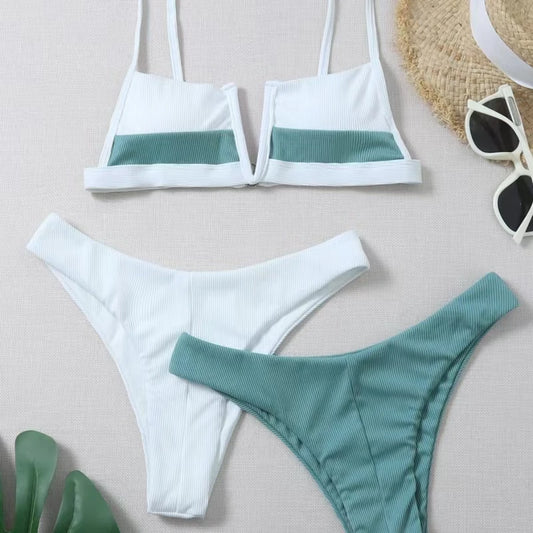 Summer Bikini Suit Deep V Shoulder Strap Bra Low Waist Breathable
