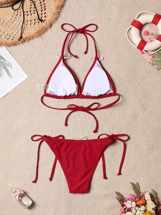 Triangle Tie Side Bikini Swimsuit 2024 New Arrival Biquini Padded Bra Sexy Solid Bikini