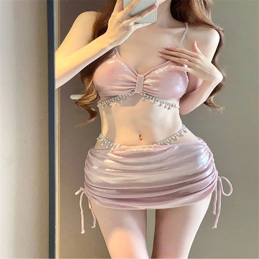 Bikini Swimsuit Piece Set Rhinestone High-End Feeling Hot Spring Swimsuit
