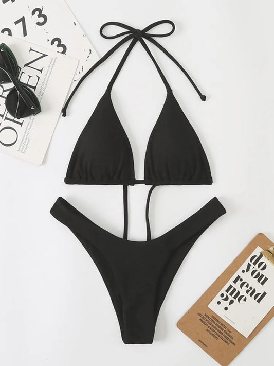 Bikini Set Triangle Bathing Suit Halter Swimwear Bandage Brazilian Biquinis