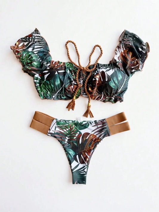 Unveil Your Allure: oiinaa's Printed Lace-Up Bikini for Women