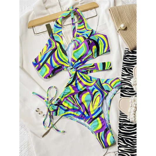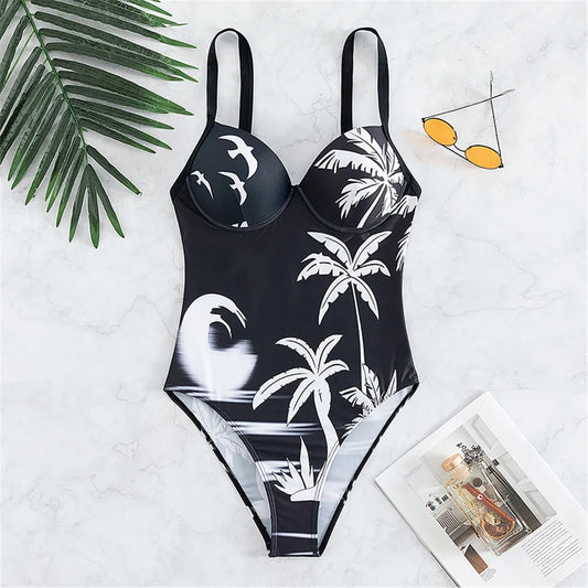 Printed Underwired One-Piece Swimsuit High Leg Cut