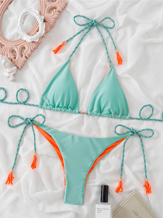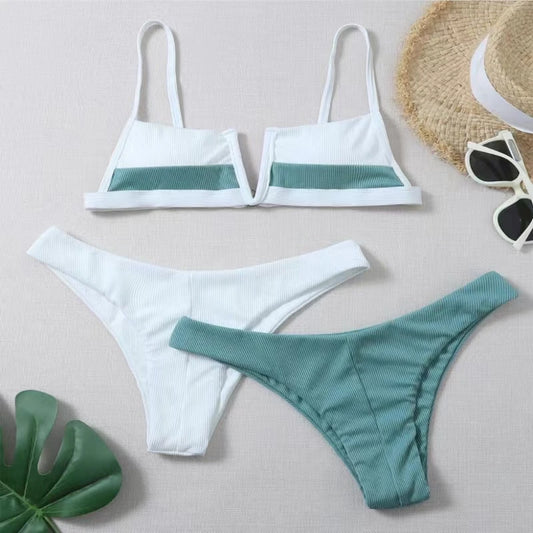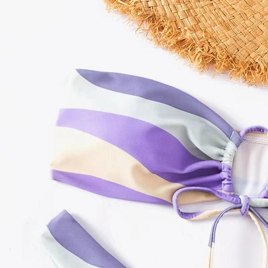 Asymmetric Halter Bikini: 2-Piece Splicing Swimwear