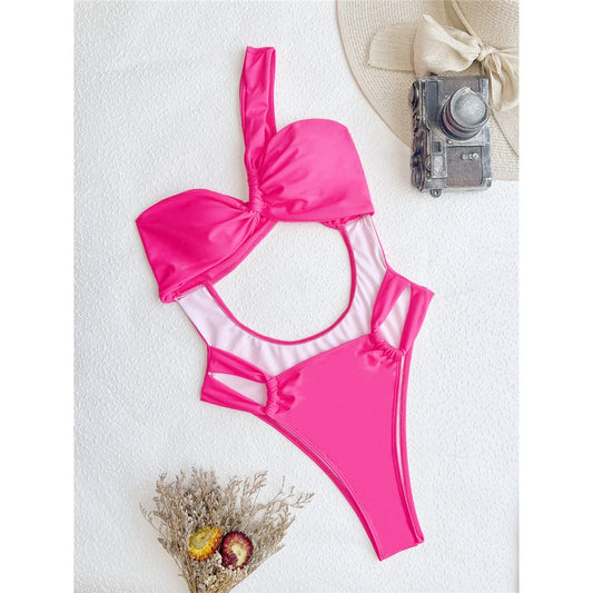 2024 Sexy One Shoulder Backless Swimsuit: Padded One-Piece