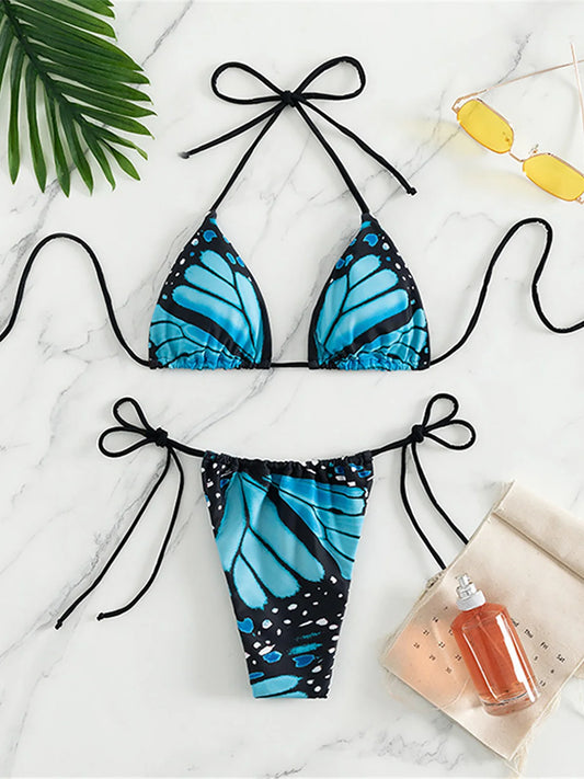 Women's High Cut Bikini: Butterfly Rhinestone Chain Swimwear