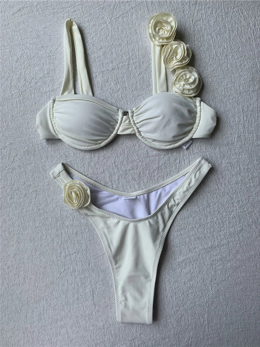 Flowers Bandeau High Cut Bikini Female Swimsuit