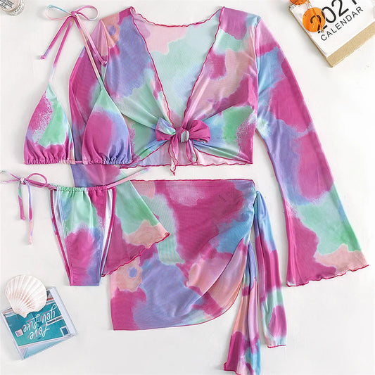 Summer Beach 3 Piece Bikinis Set With Pareo Skirt