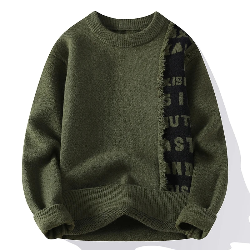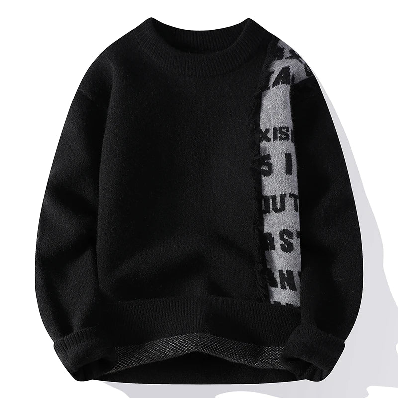 Mens Sweater Letter Pattern Crew Neck Knit Pullover Fall