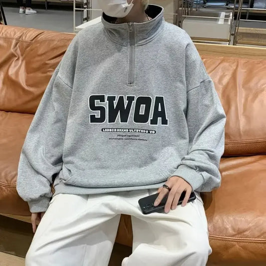 Autumn Korean Chic Letter Printed Hoodies Men Casual Oversized Pullover