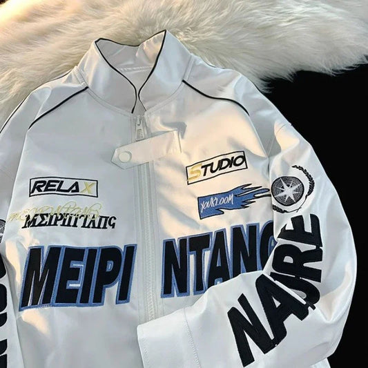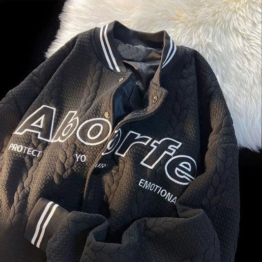 American Letter Printed Standing Collar Jacket Autumn and Winter Retro Street Hip-Hop Trend