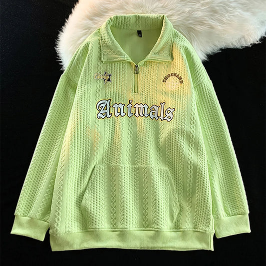 Streetwear Sweatshirt Autumn Letter Print Long Sleeve Hoodie Collar Zipper