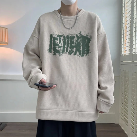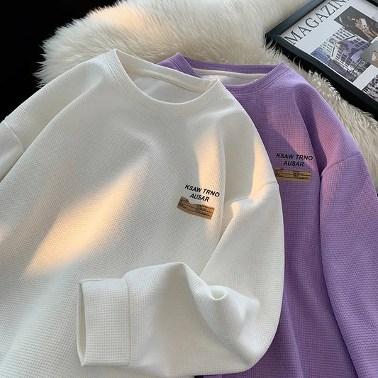 Autumn Harajuku Style Letter Print Sweatshirts Waffle Pullover Street Round Neck