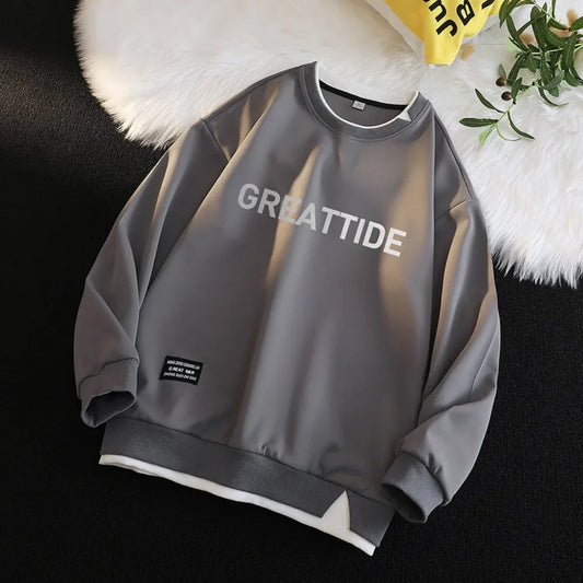 Oversized Letter Grphic Sweatshirt Autumn Loose Long Sleeve Men Korean Chic High Street Pullover