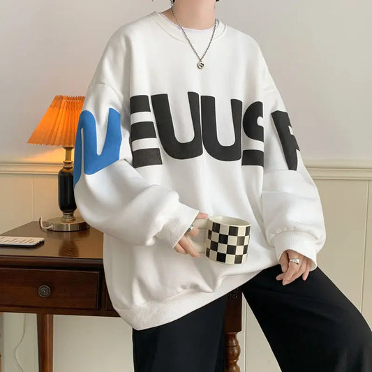 Autumn Pullover Sweatshirts Oversized Men O Neck Loose Long Sleeve Tops Letter Printed