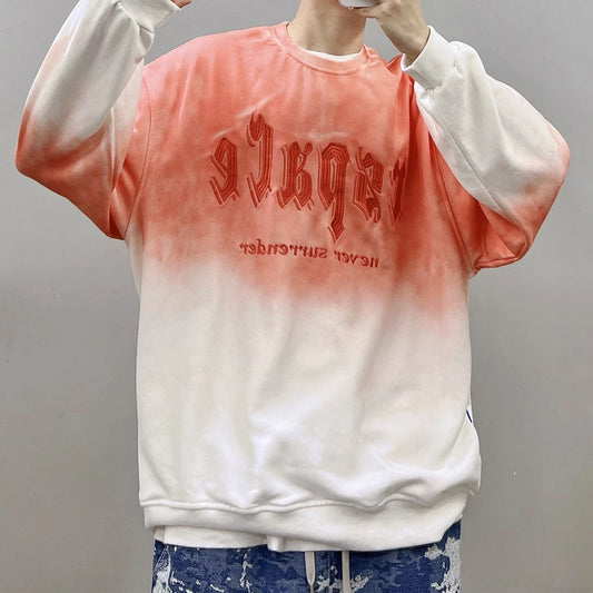 Streetwear Letter Embroidery Gradient Crew Neck Sweatshirt Oversized Pullover Tops