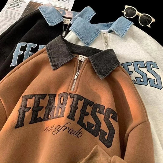 Autumn Vibes: Unisex Waffle Lapel Sweatshirt - American Retro Polo Collar Hoodie