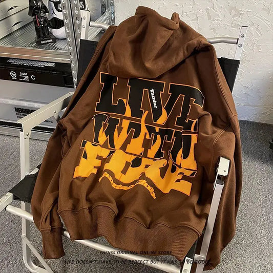 Fashion Flame American Tide Hoodie Sweater for Y2K Couples