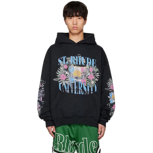 Hip Hop Casual Vibes Flower Flag Print Hoodies in High-Weight Cotton Men Retro Street Style