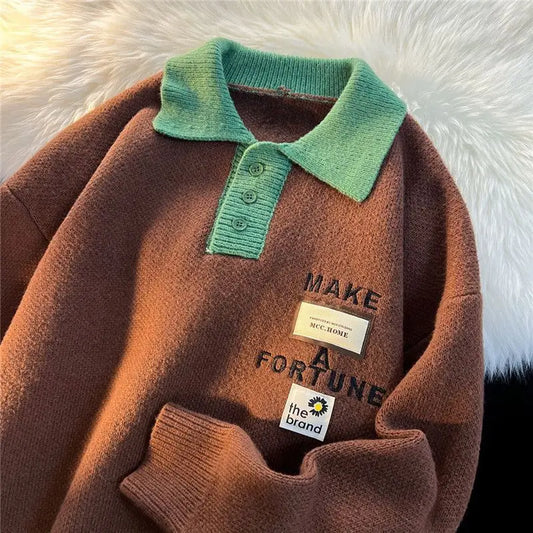 Effortless Chic: Men's Korean Style Retro Polo Collar Knit Sweater
