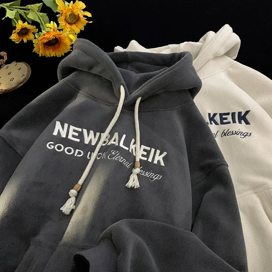American High Street Retro Fashion Letter Embroidery Hoodies Men