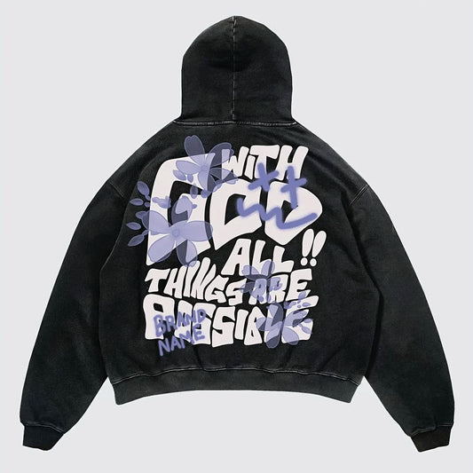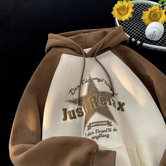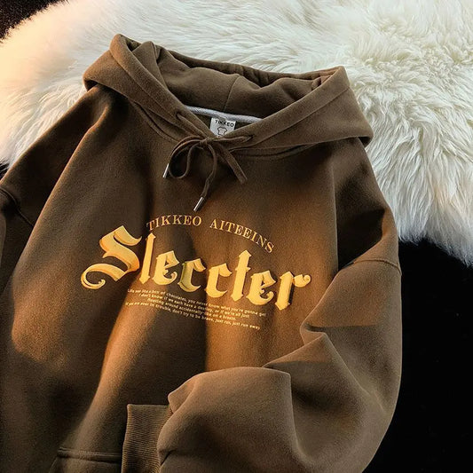 Spring and Autumn American Letter Printed Hooded Sweater Loose and Casual Y2K