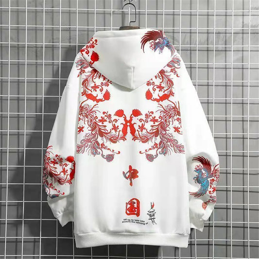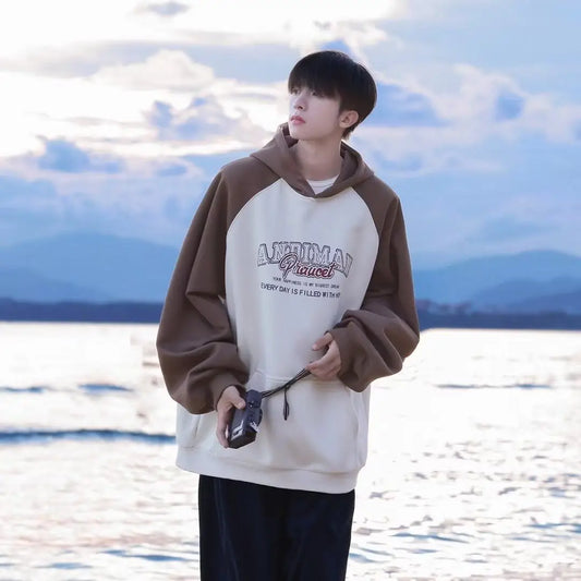 Autumn Men Hoodies Fleece Outdoor Casual Sweatshirt Korean Fashion Print Retro Sleeve