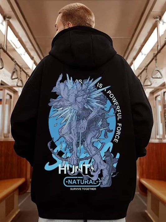 Autumn Anime Hunter Print Graphic Hoodies Men Hip Hop Fashion Oversized Streetwear