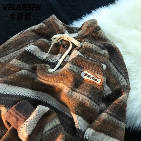 American Warm Thick Knitted Winter Korean Personalized Couple Loose Y2K Street