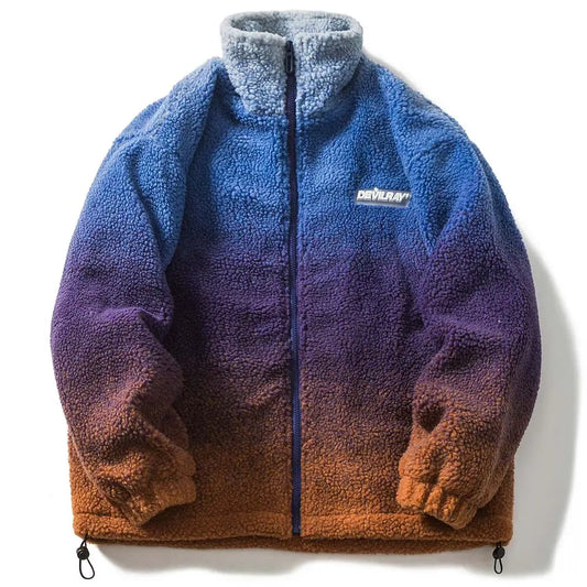 Streetwear Lambswool Retro Hit Color Gradient Parka Jacket for Men
