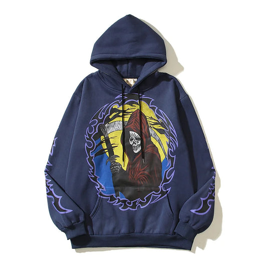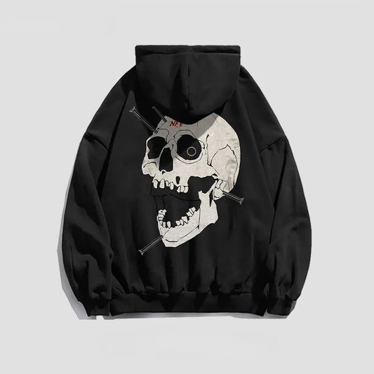 Fashion Brand Retro Skeleton Print Hoodies Men Hip Hop Fleece